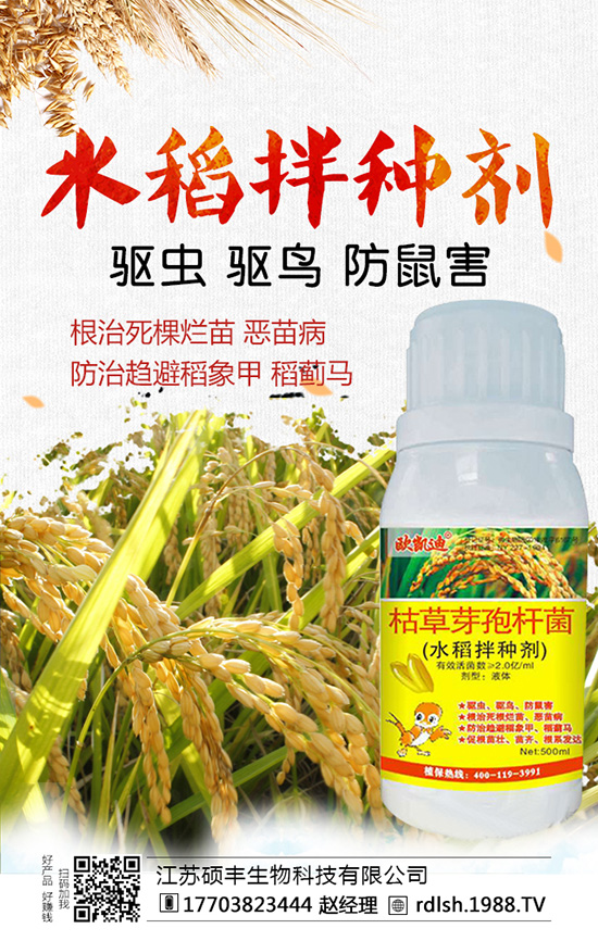 6、苗床土壤消毒用3.2惡甲水劑300倍液噴灑,用廣滅靈水劑浸種24-48 h或于1葉1心期噴灑500~1000倍液。水稻秧苗1葉1心期,每盤用15%立枯靈液劑0.9 g加水1 L噴灑。用70%敵克松粉劑500倍液或1%硫酸銨進(jìn)行噴霧,并注意保持床土濕度,以有效防止立枯病的危害。在秧苗發(fā)病初期,施立枯清每平方米用藥1~1.5 g,對(duì)水均勻噴在苗床上。