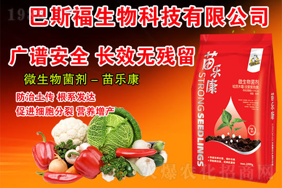 巴斯福生物科技有限公司-苗樂康,是巴斯福公司引進國際微生物技術(shù),經(jīng)特殊培養(yǎng)和發(fā)酵精心研制而成的新型微生物菌劑,具有廣譜、、長效、等特點,是目前綜合預(yù)防作物根部病害和根結(jié)線蟲的理想制劑。
