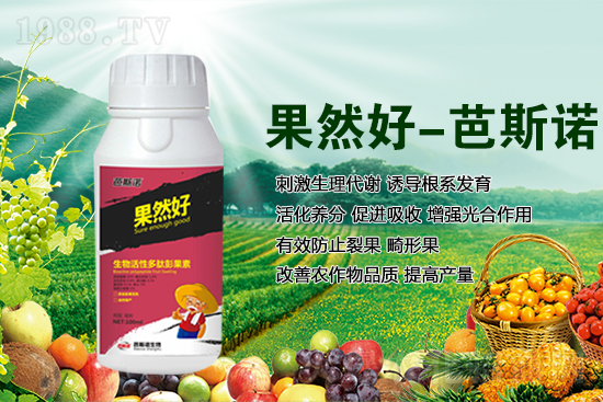 河南芭斯諾生物科技有限公司【果然好】是由公司科研人員協(xié)同農(nóng)科院果蔬研究所的專家,采用先進(jìn)流體肥生產(chǎn)工藝,針對果蔬類的生長生理特點(diǎn)和果實(shí)生長發(fā)育期需肥規(guī)律,研制而成的膨果多肽,內(nèi)含豐富的生物活性多肽,激活肽,活化蛋白酶,增糖素,高磷高鉀等,以及多種螯合態(tài)鋅,鉬,硼,營養(yǎng)全面,迅速吸收,平衡轉(zhuǎn)化,促花保果,有效促進(jìn)果實(shí)快速膨大,著色均勻,提高果實(shí)甜度,改善品質(zhì),優(yōu)質(zhì)高產(chǎn)。