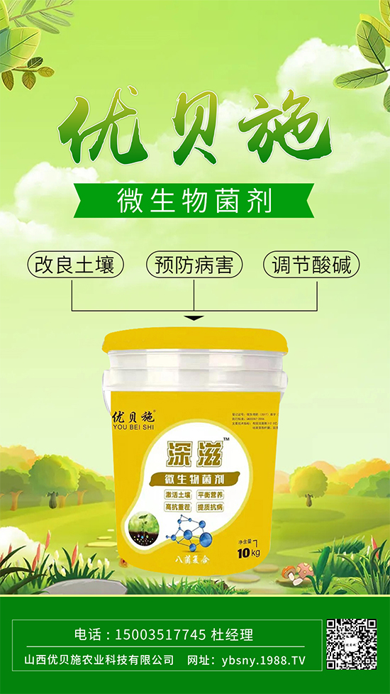 山西優(yōu)貝施農(nóng)業(yè)科技有限公司【微生物菌劑-深滋】主要以枯草芽孢桿菌、地衣芽孢桿菌、巨大芽孢桿菌、鼠李糖乳桿菌、嗜酸乳桿菌、酵母菌、糞腸球菌、光合細(xì)菌、八種復(fù)合的(好氧+厭氧)菌群復(fù)合發(fā)酵而成,使用后可以增強(qiáng)根系的生長(zhǎng),增加根系的數(shù)量(生根快,須根多);提高肥料的利用率;促進(jìn)作物對(duì)有效養(yǎng)分的吸收,增強(qiáng)作物對(duì)養(yǎng)分的運(yùn)輸性;