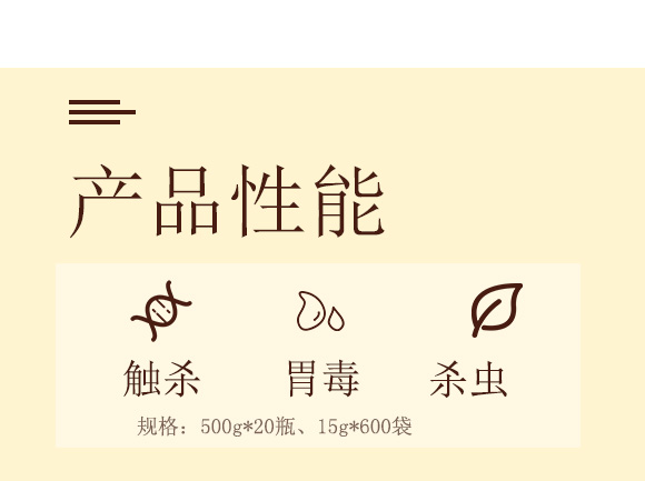 殺蟲(chóng):觸殺、胃毒雙重方式殺滅蟲(chóng)害。