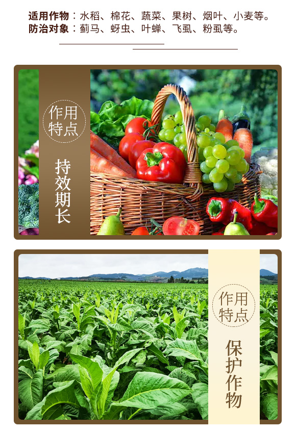 適用作物︰水稻、棉花、蔬菜、果樹(shù)、煙葉、小麥等。