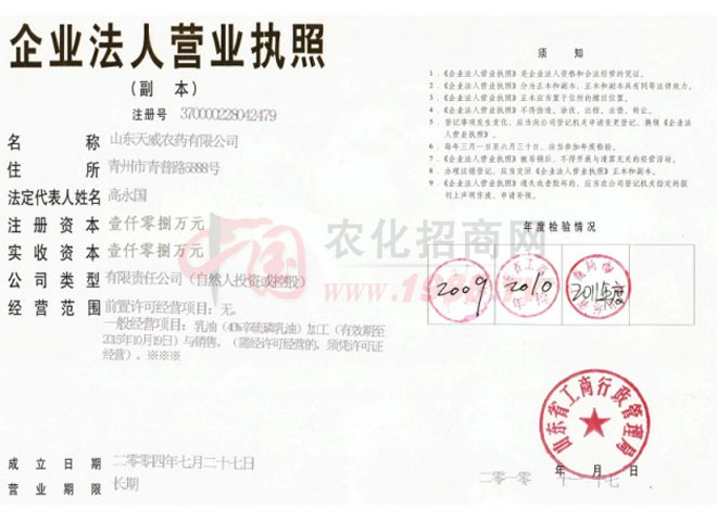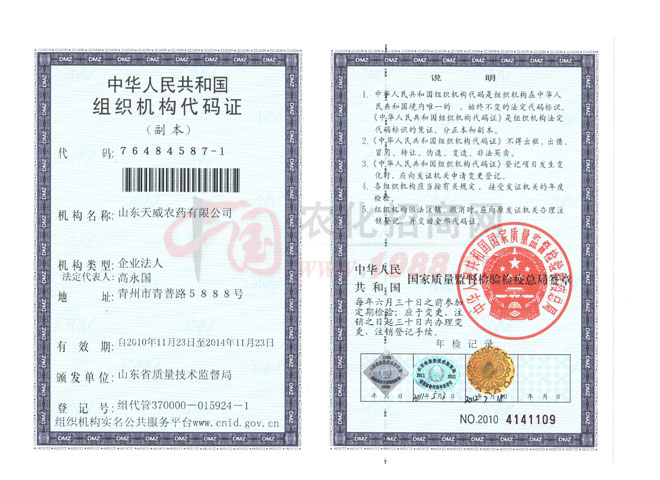 山東天威農(nóng)藥有限公司和青州市奧諾農(nóng)化有限公司是國家發(fā)改委、農(nóng)業(yè)部農(nóng)藥、肥料定點(diǎn)生產(chǎn)企業(yè);是國家農(nóng)業(yè)部農(nóng)藥檢定所農(nóng)藥科學(xué)與管理理事單位。