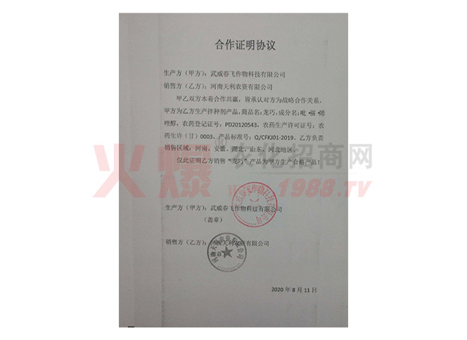 證書名稱:授權(quán)書 發(fā)證機(jī)構(gòu):武威春飛作物科技有限公司