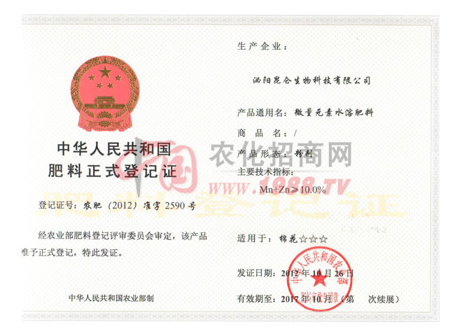 河南昆侖生物科技有限公司是國家農(nóng)肥定點生產(chǎn)企業(yè),是集研發(fā)、生產(chǎn)、銷售、服務(wù)于一體的高新技術(shù)企業(yè)。企業(yè)主要產(chǎn)品為植物生長調(diào)節(jié)劑、微生物菌肥、微量元素葉面肥、沖施肥等。公司1995年建廠,2000年改制為股份制企業(yè),2009年被農(nóng)業(yè)部授予“農(nóng)肥定點生產(chǎn)企業(yè)”,2017年公司再次更名為“河南昆侖生物科技有限公司”,相繼獲得微量元素水溶肥、含腐殖酸水溶肥、微生物菌劑等十余個農(nóng)肥登記證。公司先后在工商局注冊了挑戰(zhàn)王、愛普達、斤半棵、昆侖風(fēng)、舞谷風(fēng)、光動力等一系列產(chǎn)品商標(biāo)。迄今為止公司成立23年,營銷中心、研發(fā)中心坐落于鄭州,并有鄭州、泌陽兩處實體工廠,營銷中心包含6個業(yè)務(wù)團隊。