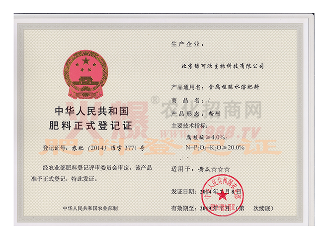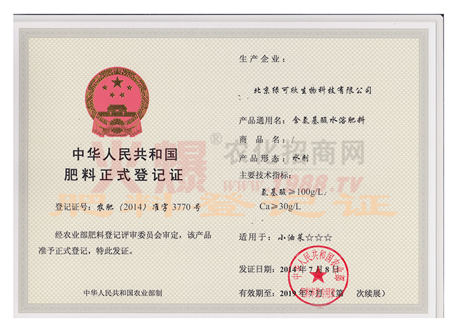 北京綠可欣生物科技有限公司成立于2007年,我們的核心技術(shù)是將進(jìn)口的高純醫(yī)藥級海藻精原粉,與氨基酸、黃腐酸、和大、中、微量元素螯合在一起,使產(chǎn)品不但可以“激發(fā)作物的生命潛能”,“提高作物的抗逆性”,“增加作物的產(chǎn)量”,同時(shí)可以限度的平衡“營養(yǎng)生長”和“生殖生長”,在國內(nèi)尚屬首創(chuàng)。