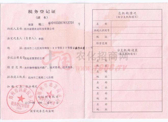 • 稅務(wù)登記證稅務(wù)登記證