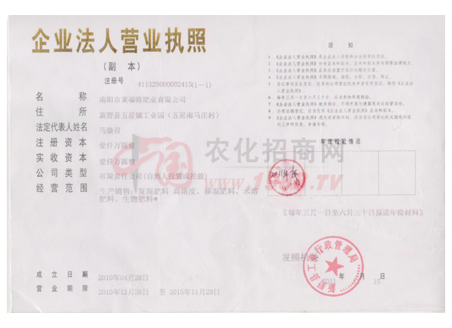 南陽市萊福特肥業(yè)有限公司是中國質(zhì)量誠信企業(yè)協(xié)會會員單位、河南省質(zhì)量誠信AAA級品牌企業(yè),公司擁有5個主導(dǎo)產(chǎn)品,是河南省電視臺上榜品牌。經(jīng)過多年努力,公司已建成了年產(chǎn)40余萬噸礦物質(zhì)肥、葉面肥、沖施肥、生物菌肥和復(fù)合肥生產(chǎn)能力的四條化肥生產(chǎn)線。