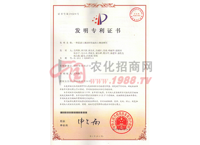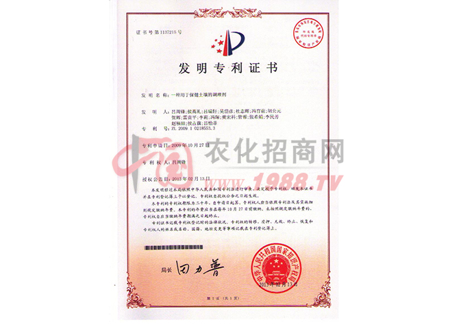 本企業(yè)主要以開發(fā)農(nóng)地修復(fù)、改良、保健技術(shù)為主,農(nóng)地、礦場、水體修復(fù)為重點的專業(yè)高新科技公司,研發(fā)生產(chǎn)的科技成果---賽眾牌土壤調(diào)理劑、魚塘凈水劑、精制有機肥系列產(chǎn)品,擁有獨立自主知識產(chǎn)權(quán),獲得五項發(fā)明專利,2016年12月榮獲“第十八屆國家發(fā)明專利獎”。公司倡導(dǎo)“凈土高產(chǎn)、潔食”新理念,促進“測土診病”、“健康田園”創(chuàng)建活動在全國各地深入開展。創(chuàng)立的“礦物法”、“富氧法”、“交換法”土壤、水體、大氣修復(fù)保健及作物保健技術(shù)體系,創(chuàng)新“土壤保健、土壤病防控、式有機農(nóng)業(yè)栽培技術(shù)”三大技術(shù)體系,使土壤保健、作物保健、減藥、土壤治理及食品有了可靠的技術(shù)和產(chǎn)品。經(jīng)十余年的土壤水體修復(fù)、保健,成果斐然。培育組建的土壤保健指導(dǎo)師隊伍及土壤病防控服務(wù)中心,為治理土壤污染、酸化、板結(jié)、退化發(fā)揮了積極作用并探索出一條簡捷的成功經(jīng)驗。創(chuàng)立的超有機--潔凈生態(tài)保健美味食品應(yīng)用技術(shù),增強了農(nóng)戶參與土壤修復(fù)保健的自覺性,受到各地農(nóng)業(yè)科技工作者的肯定,成為土壤、水體、濕地、霧霾治理的排頭兵。