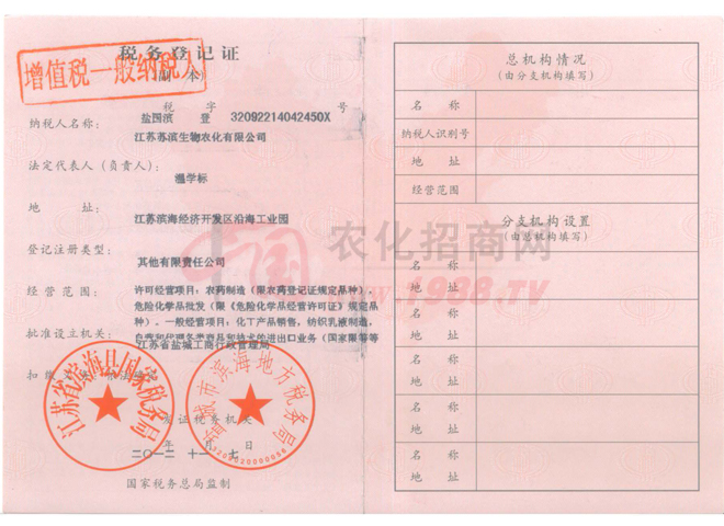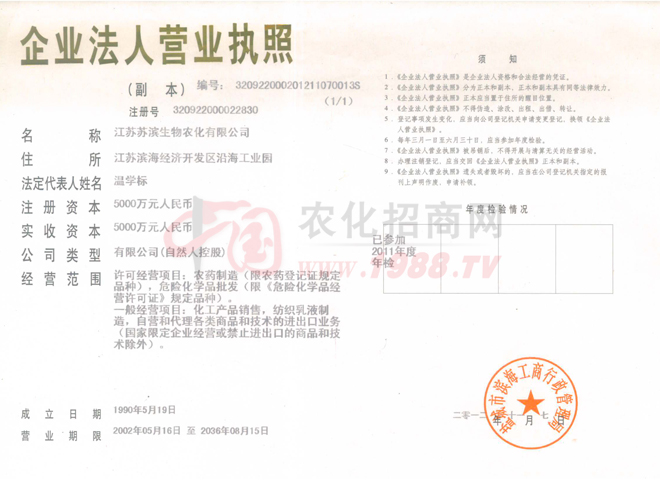 企業(yè)創(chuàng)建于1995年,是國家農(nóng)藥定點(diǎn)生產(chǎn)企業(yè),主要從事原藥合成,制劑加工復(fù)配,主產(chǎn)品“蘇濱”牌“豐之源”、“禁紋”由中國農(nóng)業(yè)大學(xué)植物生態(tài)工程研究所研制,系國家星火計(jì)劃項(xiàng)目,被評(píng)為鹽城市產(chǎn)品,產(chǎn)品銷售網(wǎng)絡(luò)覆蓋全國十多個(gè)省市。現(xiàn)擁有資產(chǎn)13000萬元,注冊(cè)資金5000萬元,占地面積70000㎡,建筑面積14800㎡,職工128人,其中專業(yè)技術(shù)人員43人,2012年銷售2億元,利稅達(dá)3000萬元。