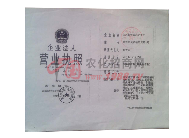 我廠系江蘇省農(nóng)藥生產(chǎn)定點(diǎn)廠家,國(guó)家中型企業(yè)。擁有外貿(mào)自營(yíng)進(jìn)出口權(quán),工廠占地面積4萬(wàn)平方米,建筑面積2.8萬(wàn)平方米。擁有固定資產(chǎn)2500萬(wàn)元,具有農(nóng)藥原藥生產(chǎn),加工制造能力及化工產(chǎn)品生產(chǎn)條件,水、電、氣公共設(shè)施配套齊全,檢測(cè)手段完備,擁有氣相色譜議,液相色譜儀等檢測(cè)設(shè)備,工廠現(xiàn)在以生產(chǎn)農(nóng)藥殺菌劑、殺蟲劑、除草劑三大系列產(chǎn)品為主,年產(chǎn)值5000萬(wàn)元以上,產(chǎn)品銷往全國(guó)各地。技術(shù)合作緊密層為水稻研究所,揚(yáng)州大學(xué)農(nóng)學(xué)院,熱忱歡迎有識(shí)志士前來洽談合作和加工生產(chǎn)。