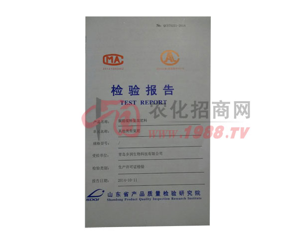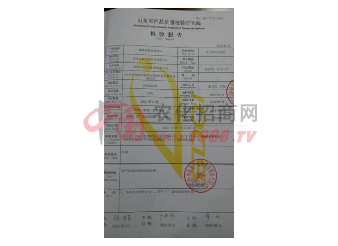 證書名稱:檢驗報告 發(fā)證機構:山東省產(chǎn)品質(zhì)量檢驗研究院